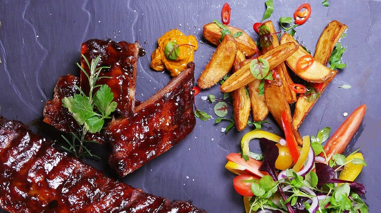 Des spareribs sucrées, des quartiers de pommes de terre épicés et la sauce Américaine Pauwels : le combo gourmand par excellence ! À déguster avec les mains, bien sûr !