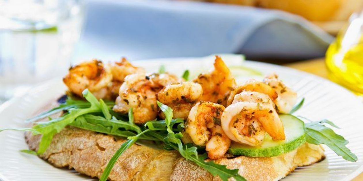 Vous êtes à la recherche d'un nouvel en-cas à ajouter à votre menu de midi ? Alors ce délicieux toast à base de scampis, de roquette et de courgette est exactement ce qu'il vous faut. Servez avec un peu plus de citron et terminez avec la sauce Cocktail de Pauwels. À savourer !