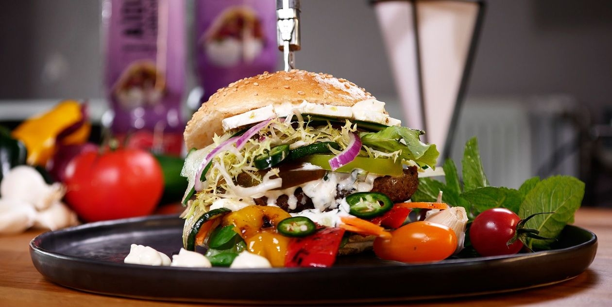Voor deze variant op de klassieke pita snack gingen we de vegetarische toer op met falafel op basis van kikkererwten en geitenkaas, aangevuld met frisse smaken van avocado, komkommer en limoen. Afwerken doen we met een toefje looksaus van Pauwels. Smakelijk!