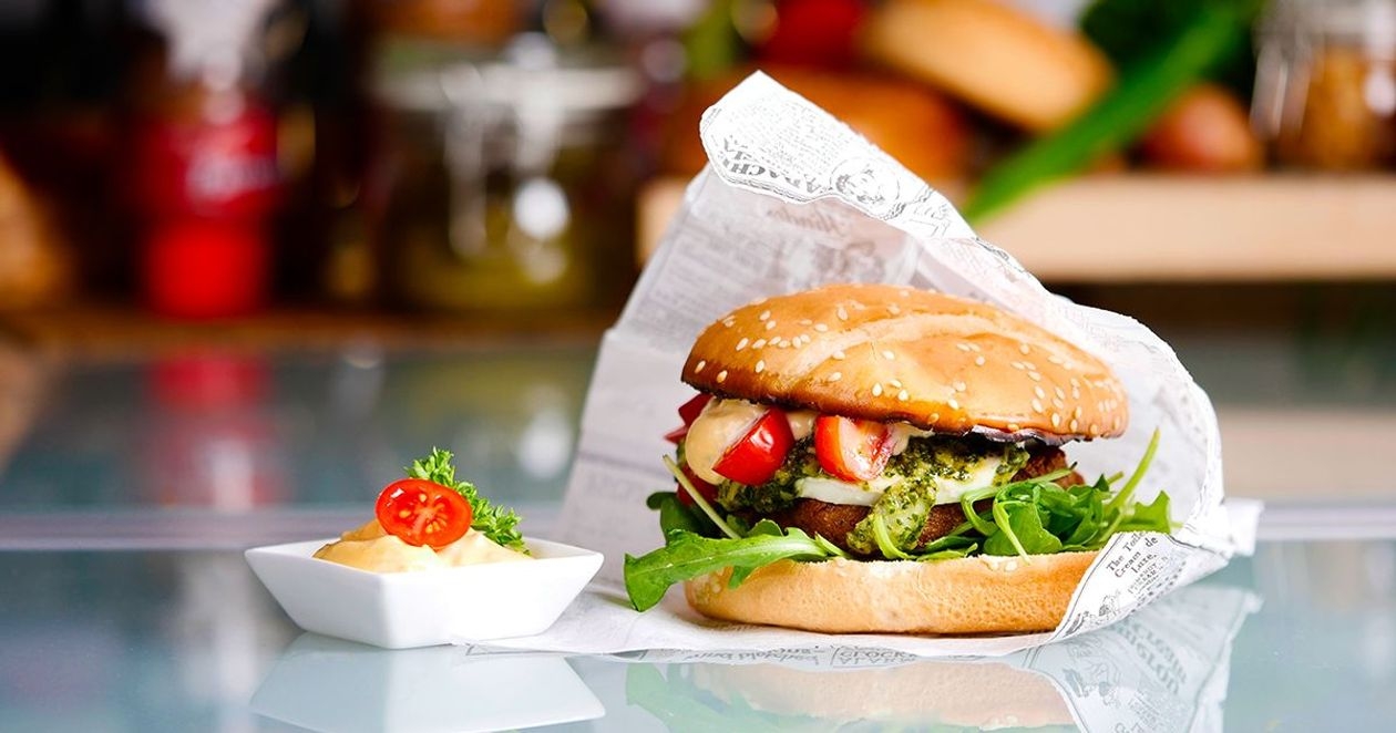 Notre Giga Italia est un hamburger aux noisettes végétarien à base de délicieuses noisettes, de tartare de tomates italiennes et de notre sauce Hamburger Giga épicée.