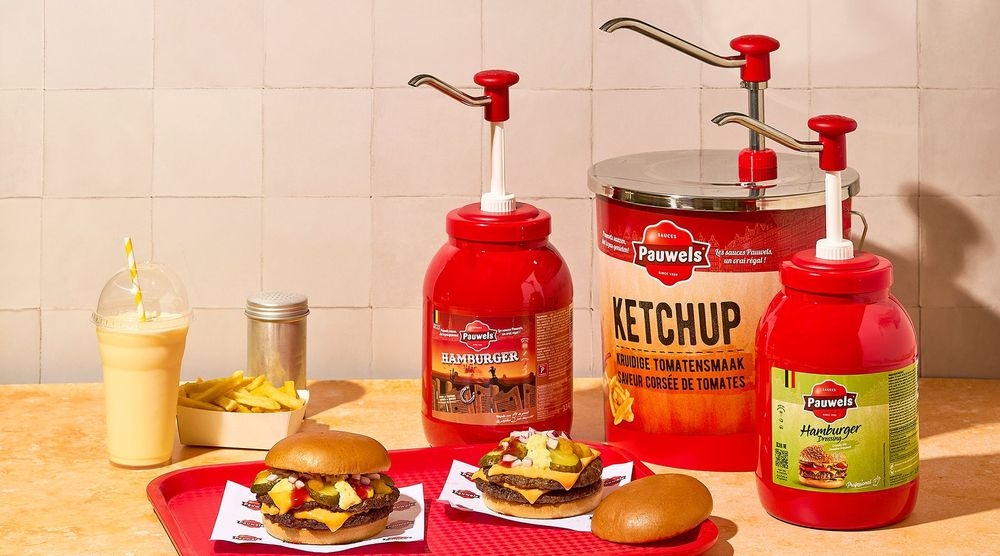 - Bouw de burger: begin met de onderste helft van het broodje, leg de twee burgers erop, voeg wat augurken en fijngesneden ui toe en werk af met Hamburger Hot, Hamburger Dressing en Ketchup. Sluit af met het bovenste broodje.