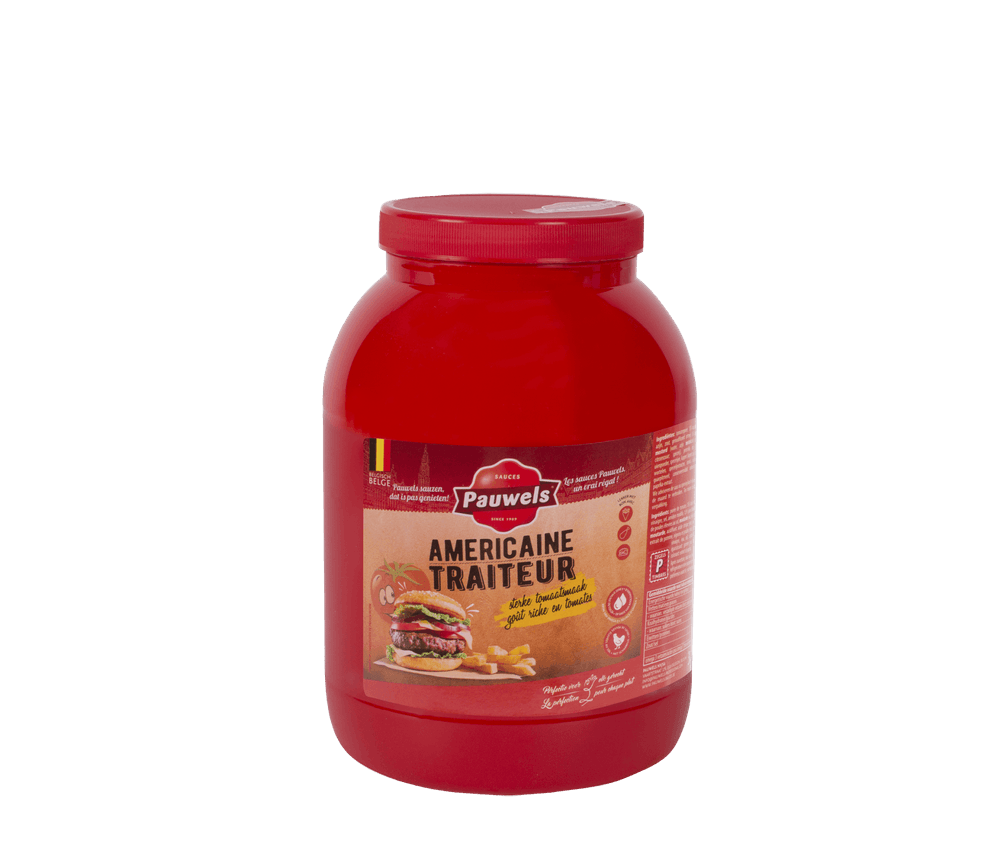 De Americaine Traiteur van Pauwels Sauzen is een smaakvolle saus die zich onderscheidt omwille van haar hoge gehalte aan tomaat en haar subtiele smaakmengeling van ui, paprika en andere smaakmakende kruiden. Deze saus laat zich perfect combineren bij gerechten met rood vlees zoals hamburgers en barbecue maar evenzeer bij frietjes of kip!